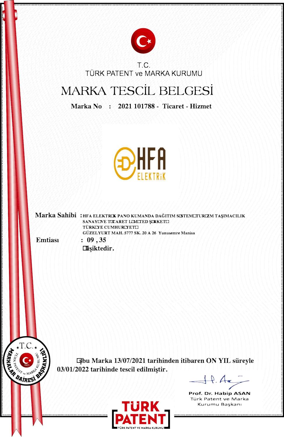 Marka Tescil Belgesi